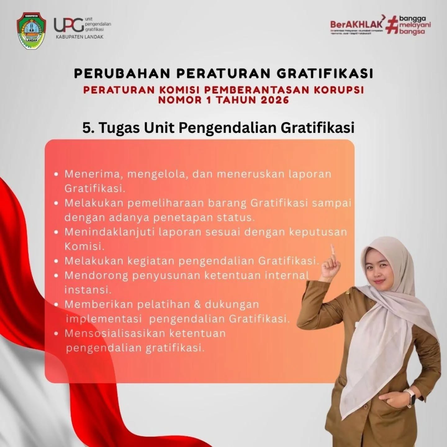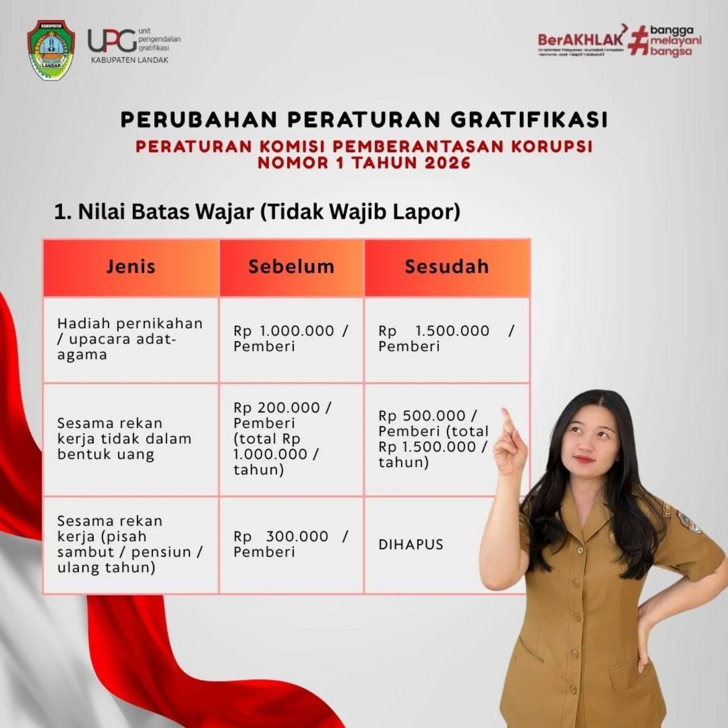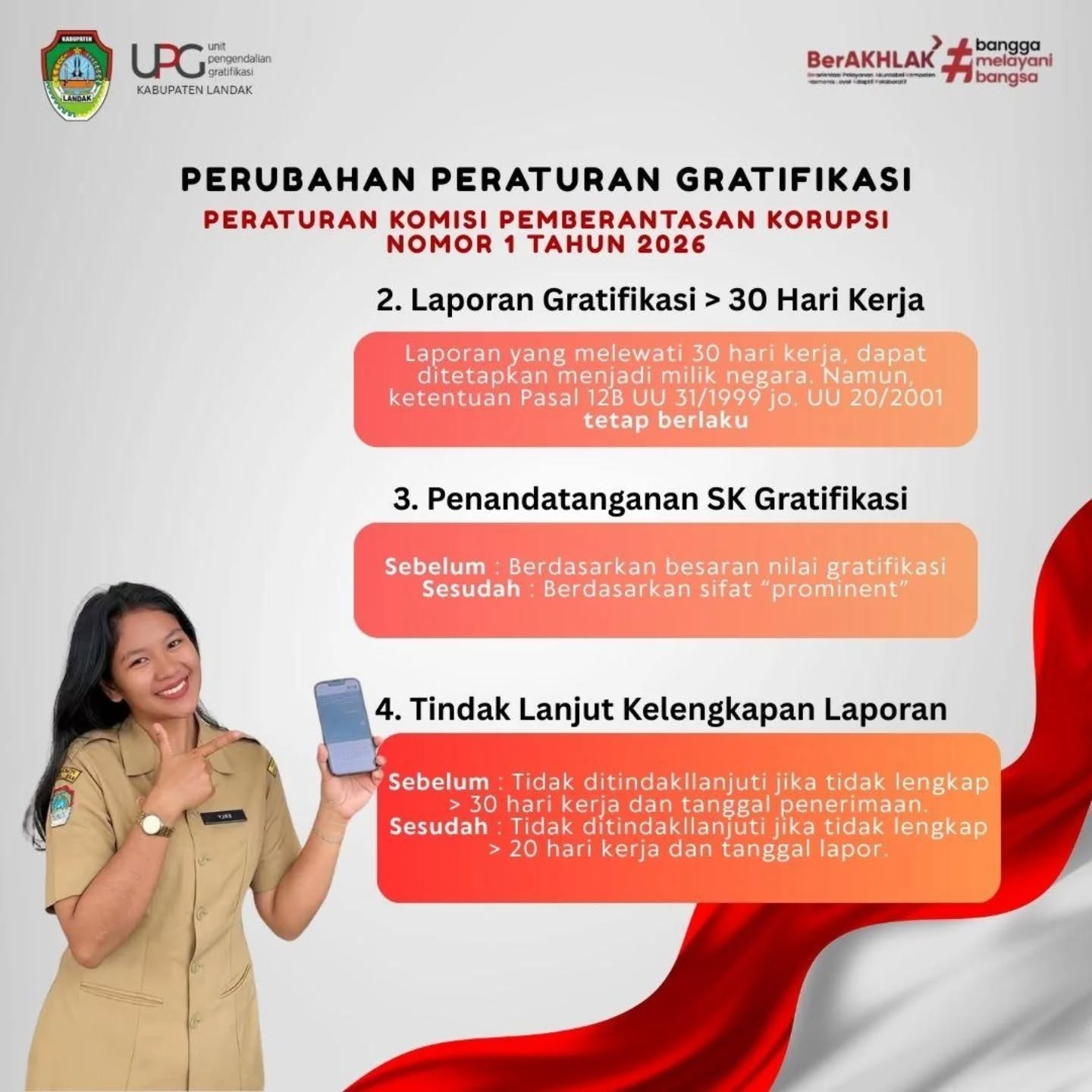 Hallo #KawanAksi, jangan sampai ketinggalan info perubahan terbaru Peraturan KPK soal Gratifikasi ya! Biar tetap up to date, yuk cek perubahannya lewat content ini ya👆 @literasigratifikasi #Gratifikasi #PelaporanGratifikasi #CegahGratifikasiIllegal #UPGKabupatenLandak