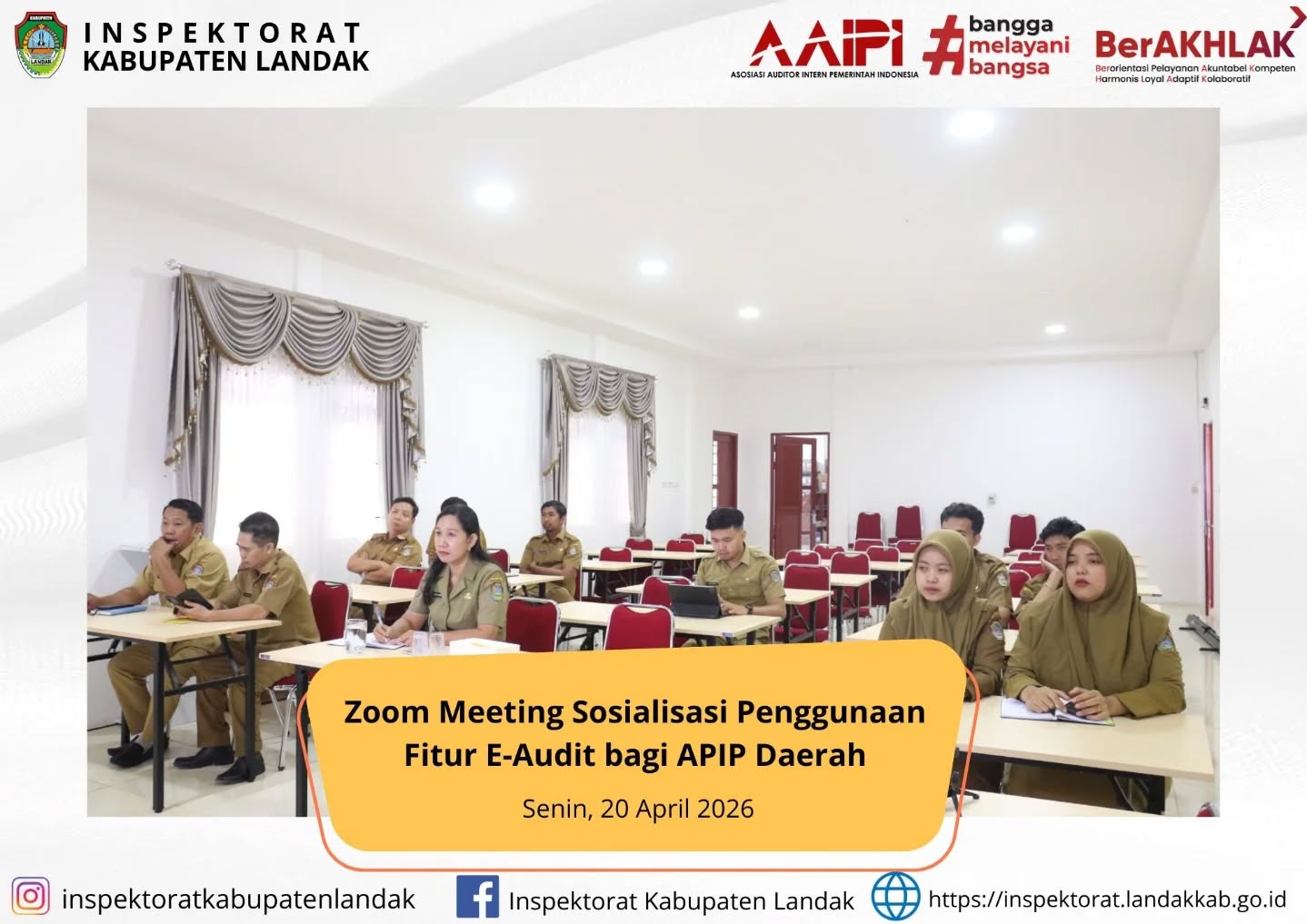 Zoom Meeting Sosialisasi Penggunaan Fitur E-Audit bagi APIP Daerah. Senin, 20 April 2026